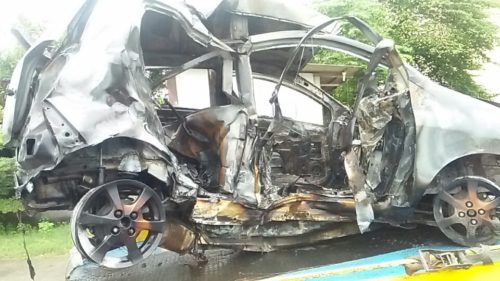 Menurut petugas dan saksi mata, kondisi jasad korban di dalam mobil, sudah tak bisa dikenali. Bahkan hanya beberapa bagian tubuh saja yang tersisa, karena ikut terbakar kobaran api.