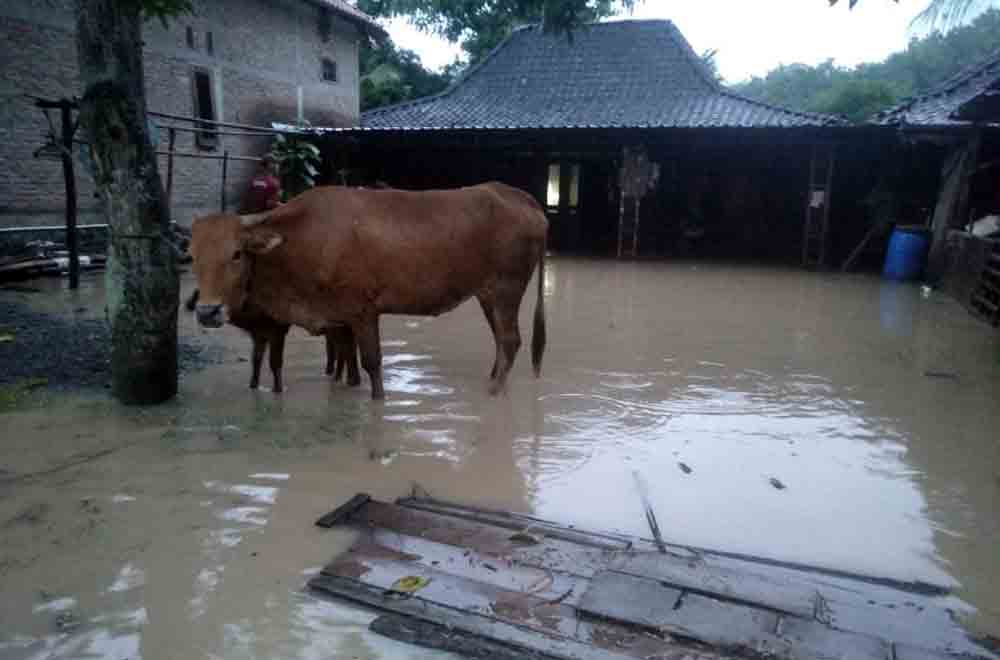 Banjir bandang akibat luapan Kali Cemoro itu merendam sedikitnya enam rumah warga di Dukuh Bapang, RT 4, Desa Bukuran, Kecamatan Kalijambe.