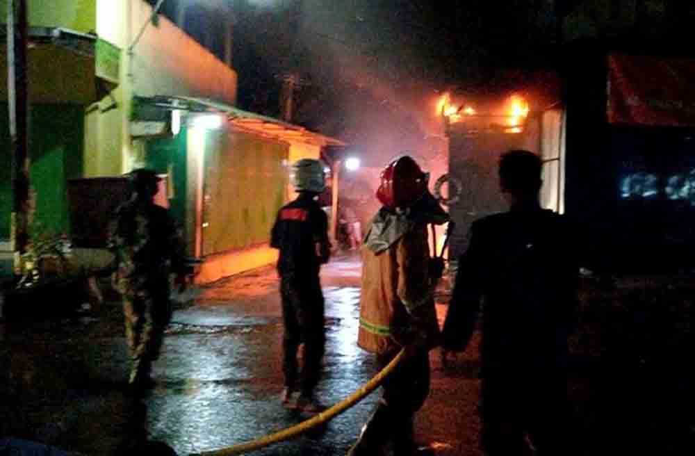 Toko elektronik dan lapak tambal ban itu pun akhirnya ludes dilalap si jago merah.