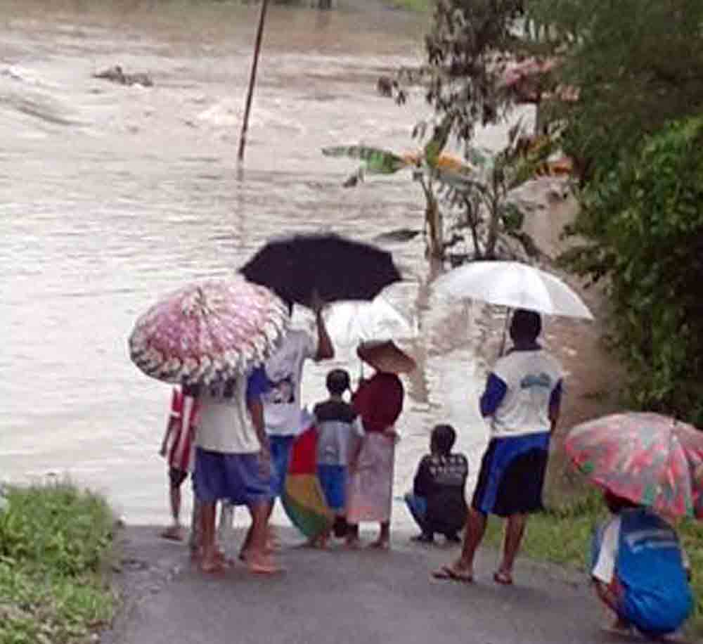 “Dari laporan yang masuk, ketinggian air 30-50 cm. Air sudah masuk 25 rumah warga,” ujarnya.