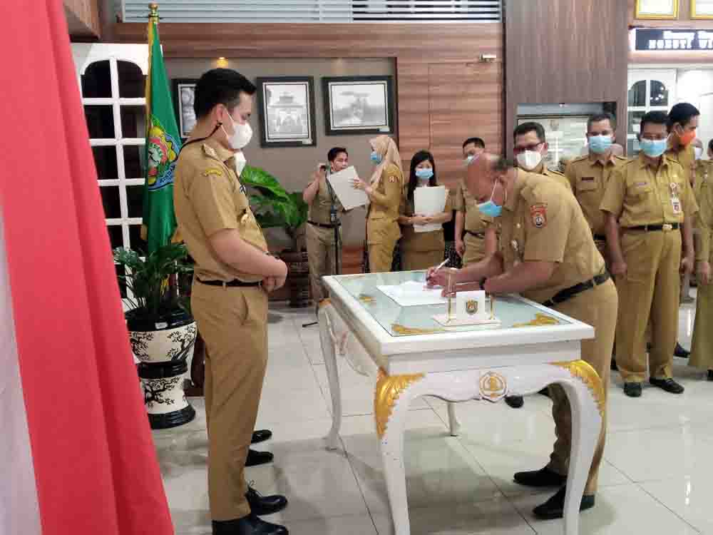 PEMERINTAH Kabupaten Kendal menggelar penandatanganan Perjanjian Kinerja dan Pakta Integritas Tahun 2021, Senin (8/3/2021) di Ruang Paringgitan Kabupaten Kendal.