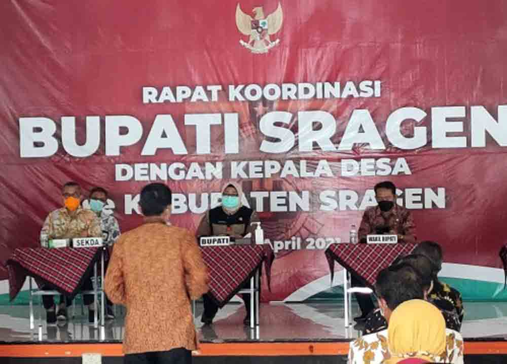 Yuni, sapaan akrab Bupati Sragen Kusdinar Untung Yuni Sukowati menyampaikan hal tersebut dalam Rapat Koordinasi Bupati Sragen dengan Kepala Desa se-Kabupaten Sragen di Gedung Kartini Sragen, Kamis (1/4/2021).