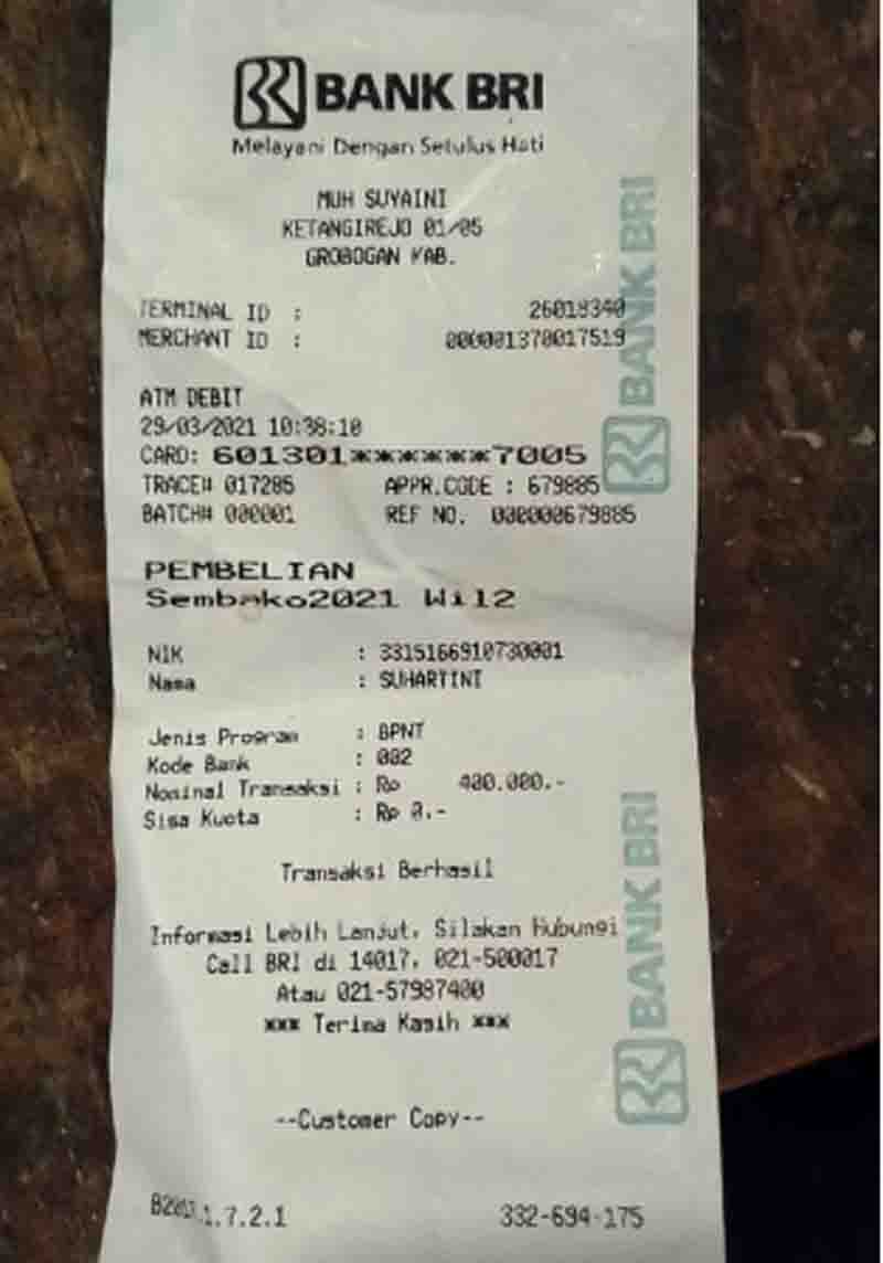 BEBERAPA warga Dusun Glonggong, Desa Ketangirejo, Kecamatan Godong, Kabupaten Grobogan mengeluhkan bantuan pangan nontunai (BPNT) berupa beras. Selain kualitas yang rendah, juga jumlah beras yang tidak sesuai.