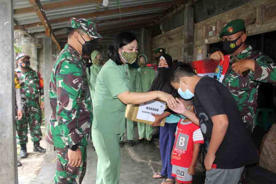 MEMPERINGATI HUT Ke-55 Korem 074/Warastratama dan HUT Ke-75 Persit Kartika Chandra Kirana, Kodim 0726/Sukoharjo menggelar kegiatan bakti sosial, Rabu (7/4/2021).