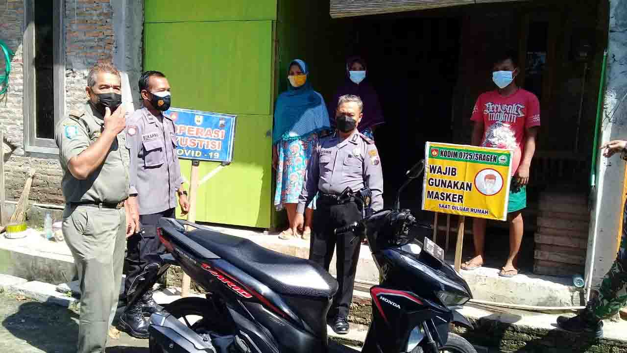 KAPOLSEK Plupuh Iptu Suparno didampingi Wakapolsek Iptu Sukarno serta Kasi Trantib Kecamatan Plupuh Bambang Pramono, saat mengunjungi dan memberikan bantuan sembako ke rumah warga yang melakukan isolasi mandiri (isoman).