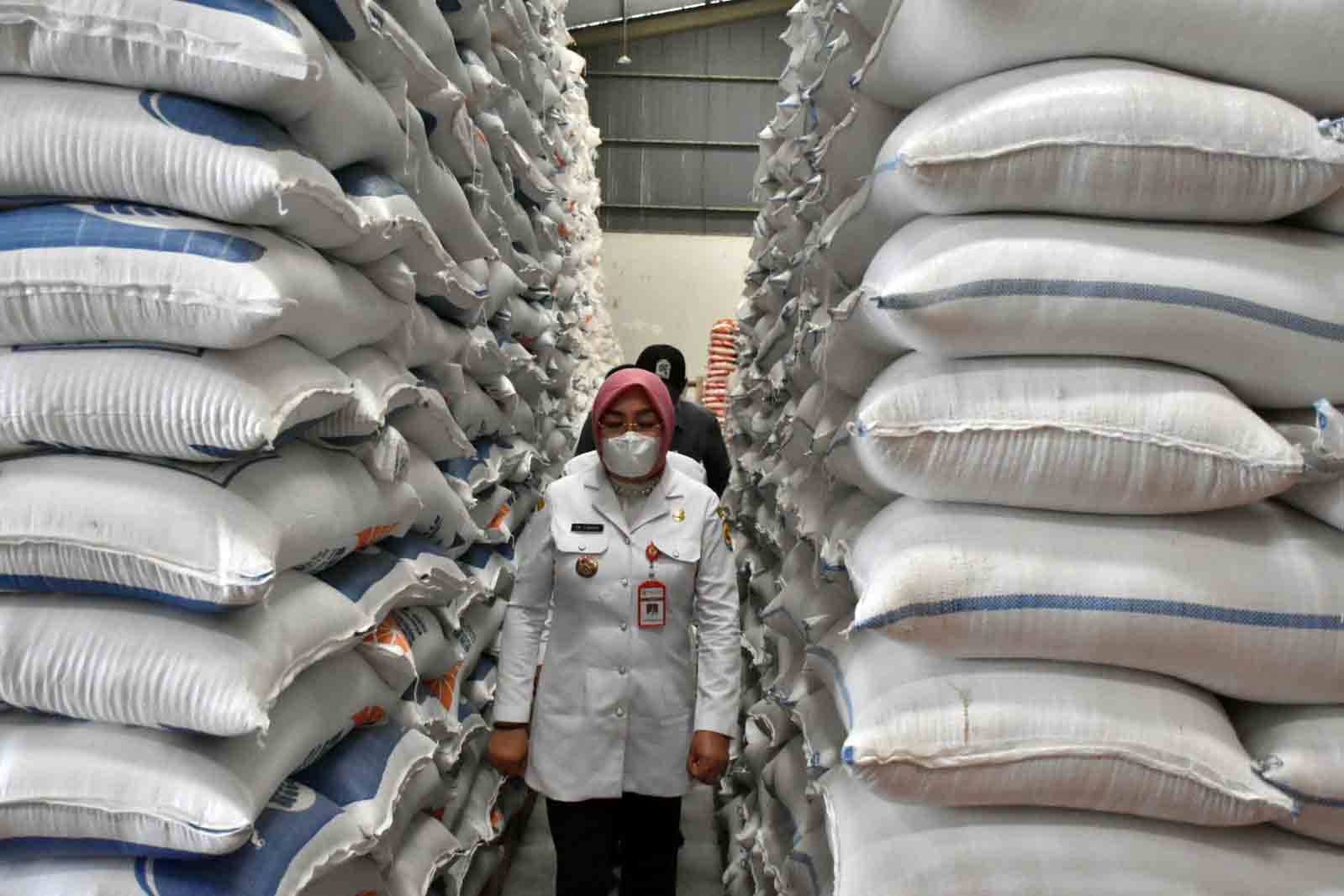 PASTIKAN kualitas beras bantuan sosial (bansos), Bupati Grobogan Sri Sumarni melakukan inspeksi mendadak (sidak) ke Bulog Purwodadi, Rabu (21/7/2021).