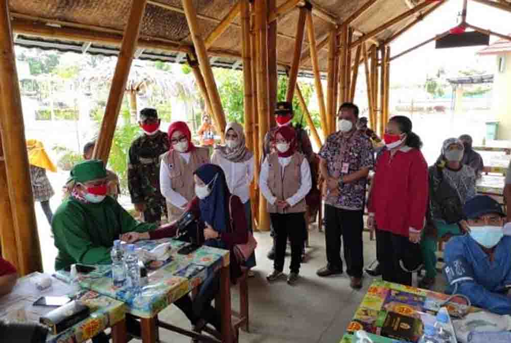 BUPATI Grobogan Sri Sumarni melakukan pantauan vaksinasi ke Kecamatan Brati, tepatnya di Taman Wisata Geopark, Desa Karangsari, Minggu (22/8/2021) pagi.