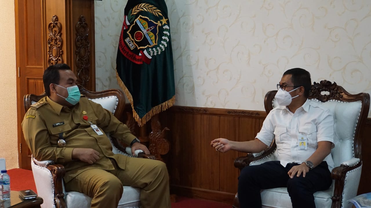 BUPATI Blora Arief Rohman menerima kunjungan Kepala Balai Besar Wilayah Sungai (BBWS) Pemali Juana Muhammad Adek Rizaldi bersama rombongan di kantornya, Senin (6/9/2021) siang.
