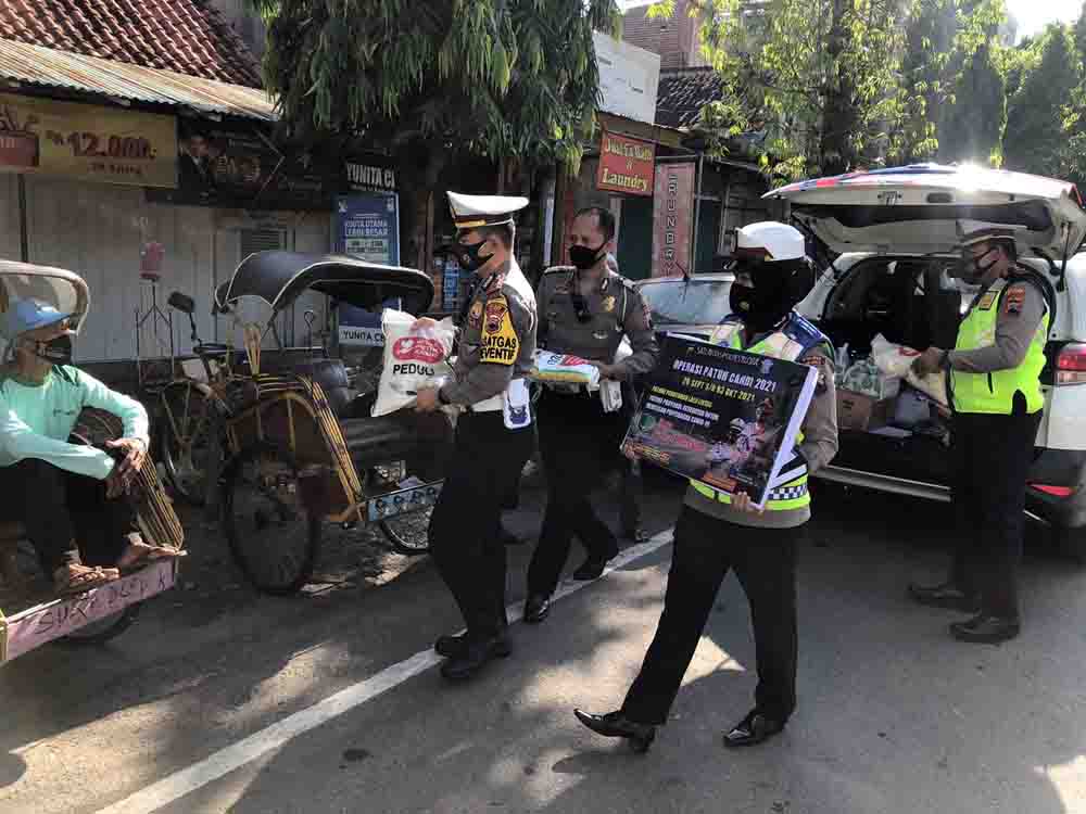 Dipimpin Kasatlantas AKP Edi Sukamto, pembagian bansos tersebut dilakukan sambil melaksanakan patroli mobiling. Adapun sasaran bansos adalah para tukang parkir, tukang becak, tukang sapu, dan kaum duafa lainnya yang ditemui saat patroli.
