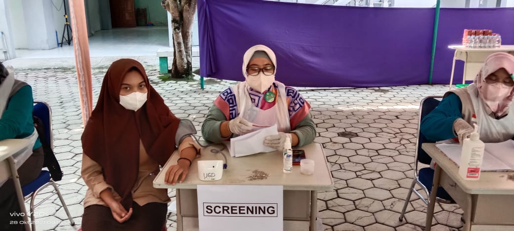 Siswai SMKN 1 Plupuh yang mau divaksin dosis ke 2 disecreening lebih dahulu Kamis (28102021)