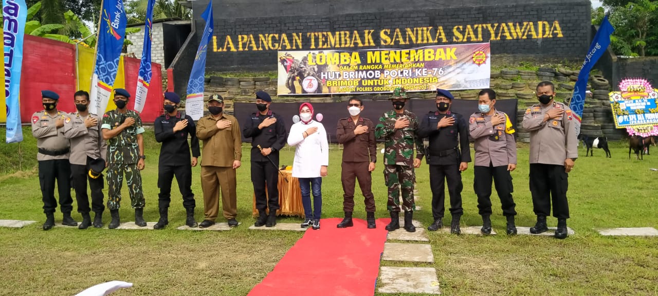 Tasyakuran peringatan HUT Brimob ke 76 tetap menerapkan prokes, berlangsung di lapangan tembak Sanika Satyawada Polsek Toroh Grobogan, Selasa pagi (16/11/21)