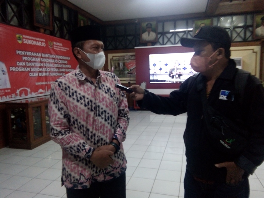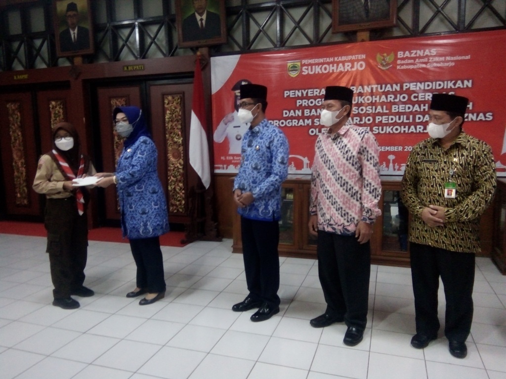Bantuan diserahkan langsung oleh bupati Sukoharjo Etik Suryani di ruang loby bupati pada Kamis ( 16/12/2021) yang dihadiri oleh wakil bupati, ketua Baznas, kepala dinas pendidikan dan kebudayaan, kepala Dinas Sosial, dan para penerima bantuan.