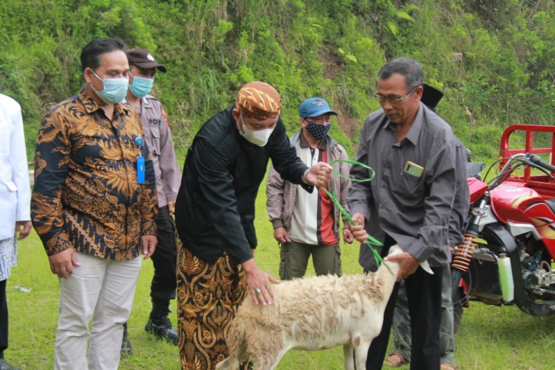 Penyerahan bantuan ekor kambing kepada 7 peternak dilakukan oleh Kabag Perekonomian Pemerintah Kabupaten Kendal, Mohammad Eko yang didampingi Direktur Utama PT BPR BKK (Perseroda) Kabupaten Kendal, Ahmad Mundolin.
