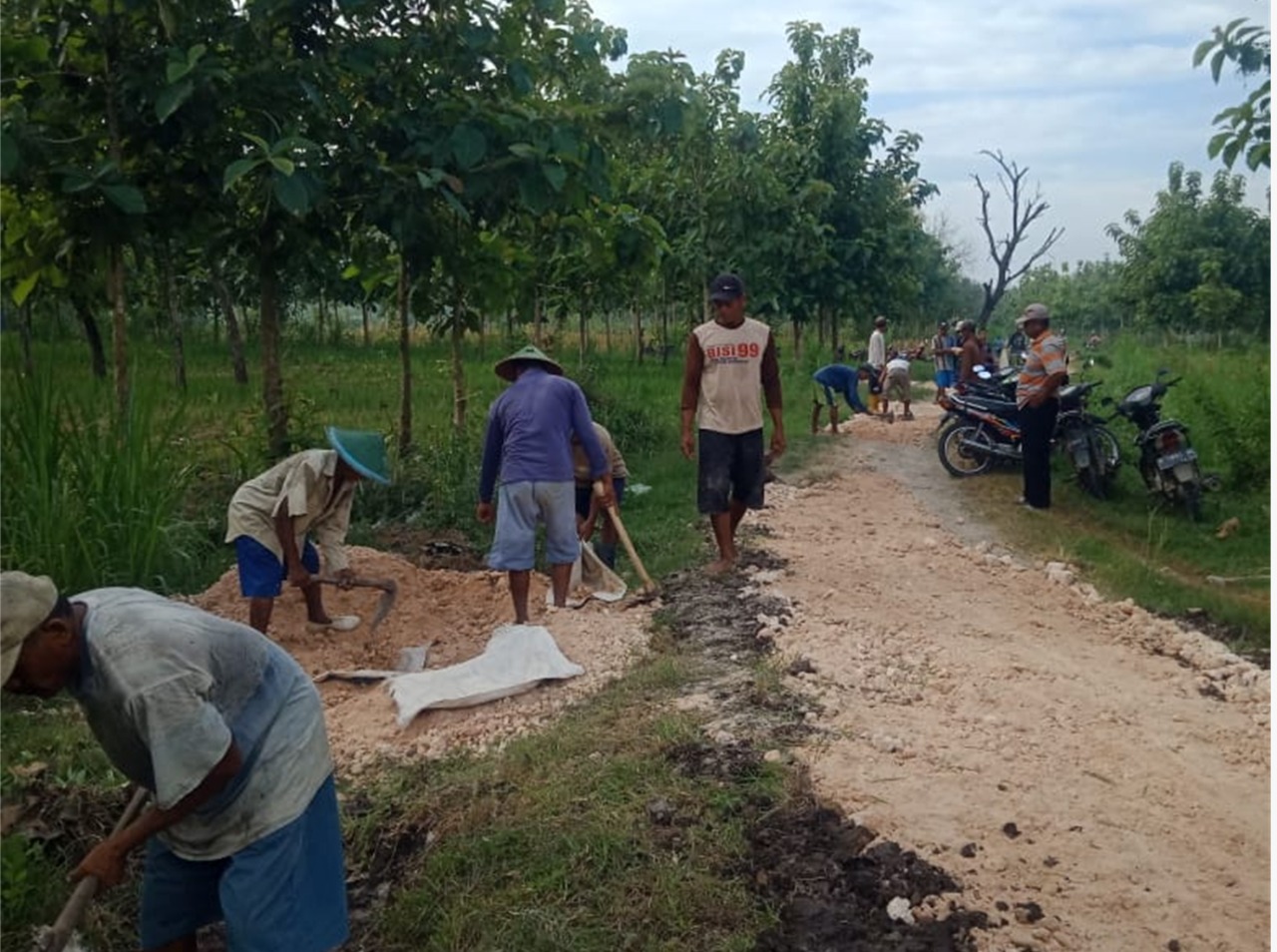 Blora, Lembaga Masyarakat Desa Hutan (LMDH) “ Langen Jati” desa Desa Tanggel Kecamatan Randublatung, Kab Blora terapkan dana sharing dari Perhutani untuk perbaiki Jalan desa, pelaksanaanya dilakukan gotong royong antara msayarakat, LMDH dan Perhutani, Minggu (09/01)