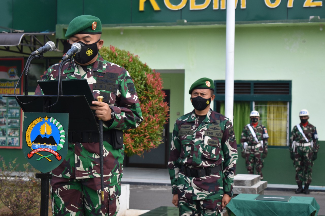 Inspektur Upacara Dandim 0725/Sragen Letkol (Inf) Anggoro Heri Pratikno membacakan amanat Kepala Staf Angkatan Darat (Kasad) Jenderal TNI Dudung Abdurachman