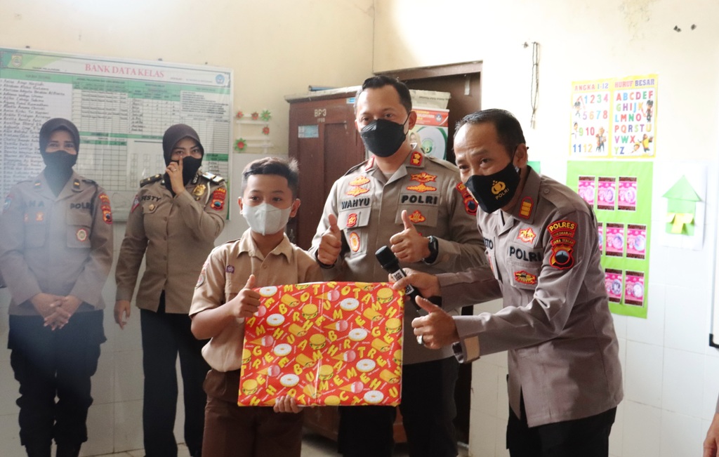 “Ayo siapa yang bisa menjawab kuis ini akan mendapatkan hadiah,” kata Kapolres kepada anak-anak.