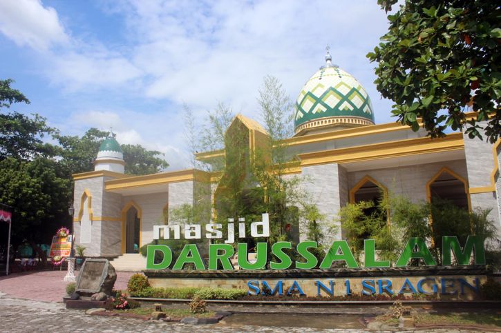 Masjid Darussalam di kompleks SMAN 1 Sragen ini sangat megah memiliki kapasitas 1.000 jemaah dan menelan biaya Rp3,3 miliar.