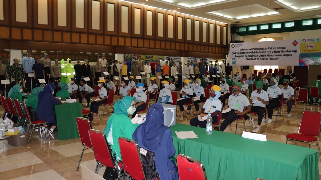 “Kita harapkan nanti di industri, di pabrik di sektor produksi tidak terganggu aktivitasnya karena sudah diberikan vaksin penguat sehingga bisa memberikan kekuatan yang lebih kepada sektor produksi,” katanya.