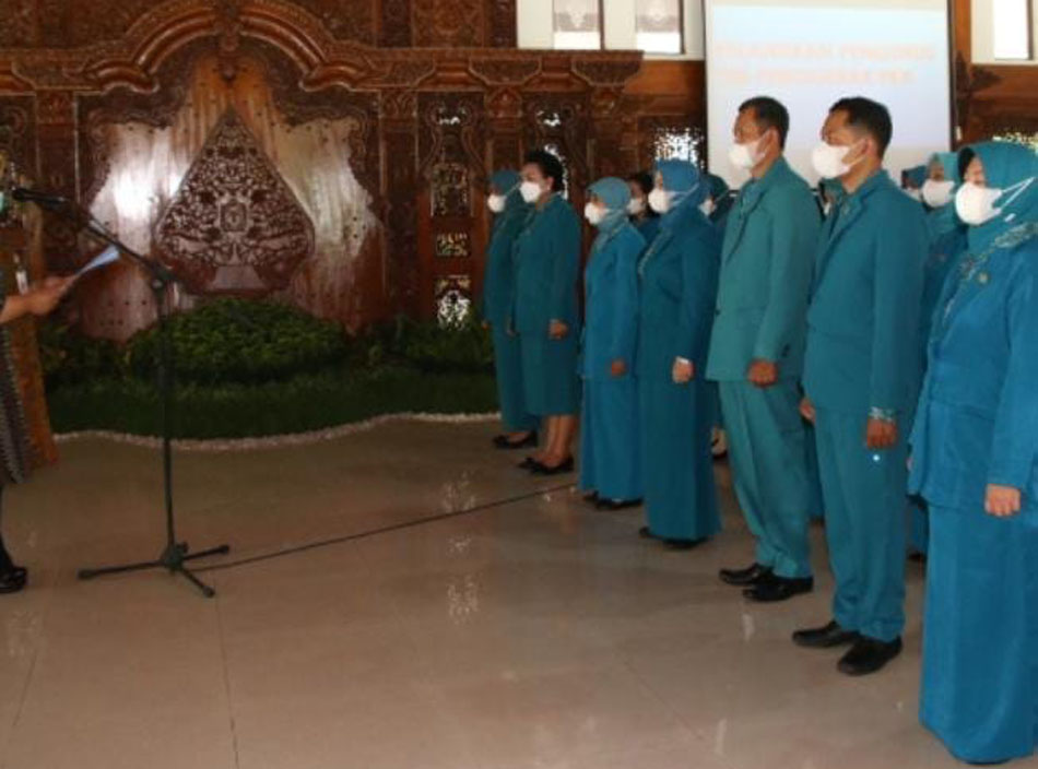 Sragen-Inspirasiline.com. Bupati Sragen Kusdinar Untung Yuni Sukowati melantik sekaligus mengambil sumpah 51 pengurus Tim Penggerak(TP) PKK Kabupaten Sragen masa bakti tahun 2021-2026 di Pendopo Sumonegaran Rumah Dinas (Rumdin) Bupati Sragen, Selasa (1/3/2022).