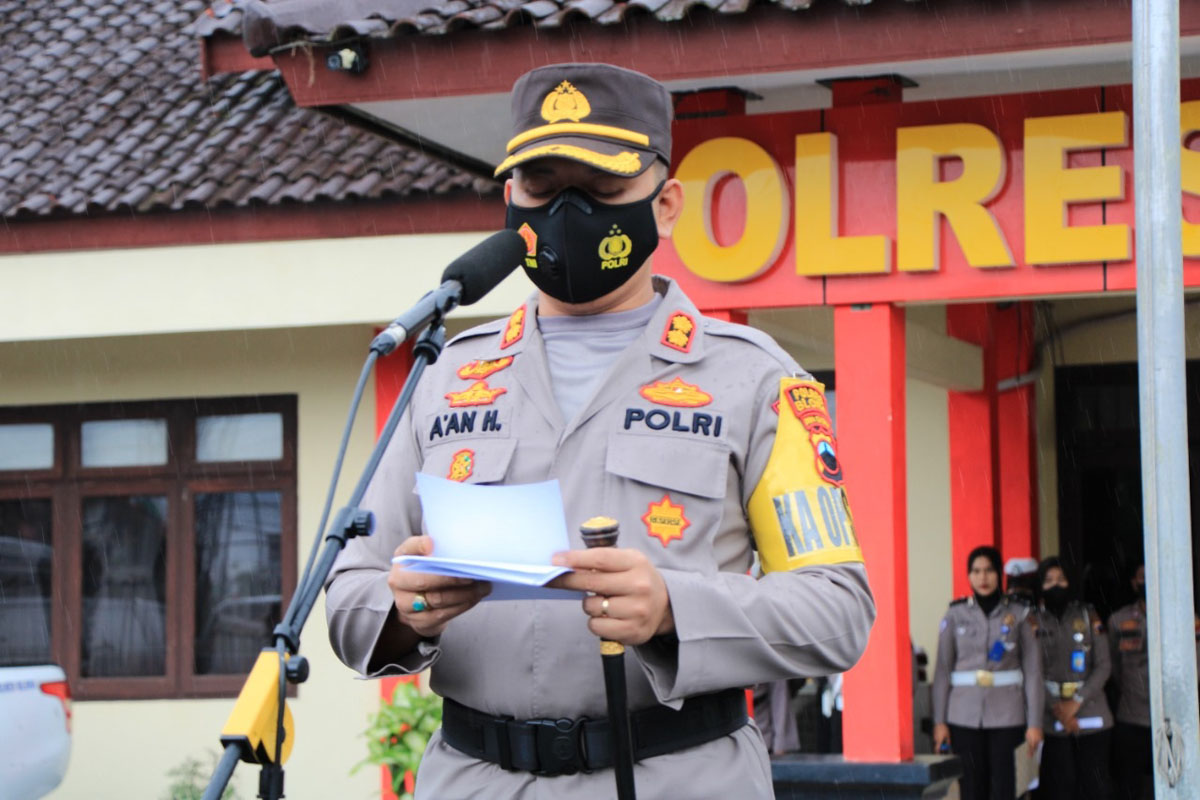 Meski dalam suasana gerimis, apel gelar pasukan berjalan penuh semangat. Kapolres Blora AKBP Aan Hardiansyah,SH,MH selaku pimpinan apel membacakan amanat Kapolda Jawa Tengah.
