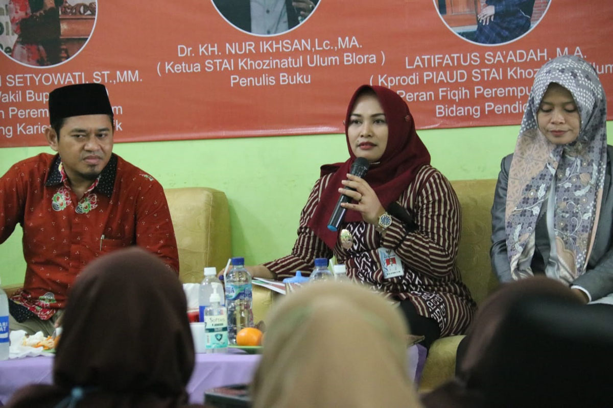 Dalam acara Bedah Buku ini menghadirkan Pembicara Wakil Bupati Tri Yuli Setyowati ST,.MM, Ketua Stai Khozinatul Ulum Blora Dr KH Nur Ikhsan,Lc., MA,. dan Kaprodi PIAUD Stai Khozinatul Ulum Blora Latifatus sa’adah, M. A.