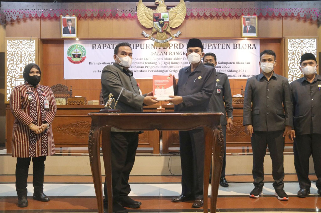 Adapun dalam rapat tersebut dirangkaikan dengan persetujuan bersama antara Bupati Blora dengan DPRD terhadap 3 Raperda, Penetapan Propemperda Tahun 2022 dan penyerahan hasil Reses Masa Persidangan Ketiga Kab. Blora tahun sidang 2021.