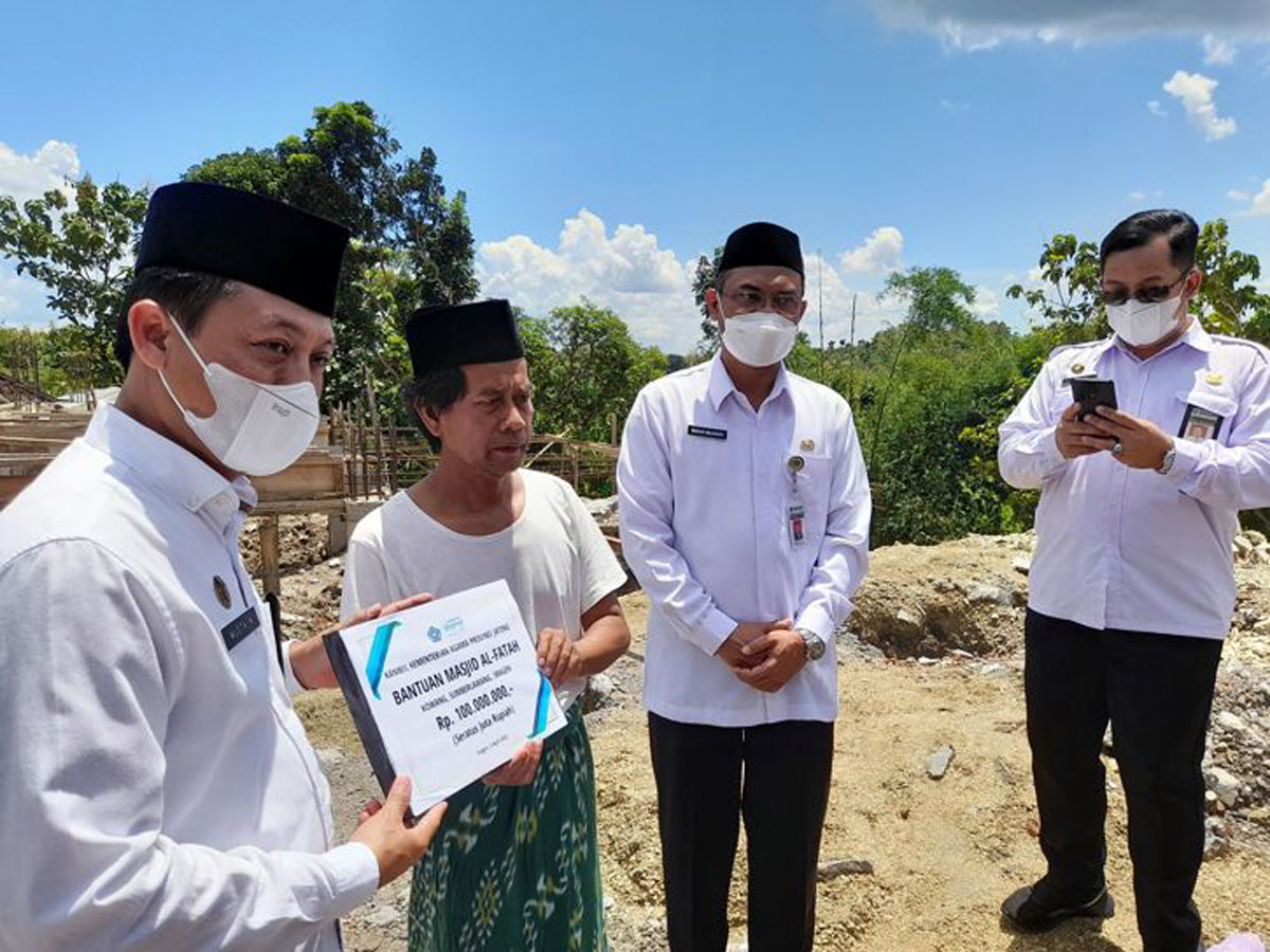 Sragen-Inspirasiline.com. Polemik renovasi masjid Al Fatah di Dukuh Kowang, Desa Ngargotirto, Kecamatan  Sumberlawang, Kabupaten Sragen mendapat perhatian Kepala Kantor Wilayah Kementerian Agama Jawa Tengah ( Kakanwil Kemenag Jateng) Musta’in Ahmad yang Selasa (5/4/2022) kemarin terjun langsung ke lokasi memberikan bantuan Rp100 juta