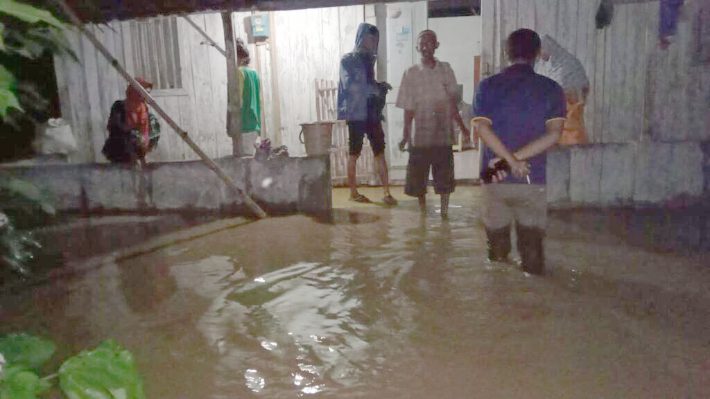“Hujan deras dengan intensitas tinggi, saluran air tidak mampu menampung debit air, sehingga meluap dengan ketinggian air 30 sampai 80 senti,” terangnya kepada media ini, Sabtu petang.