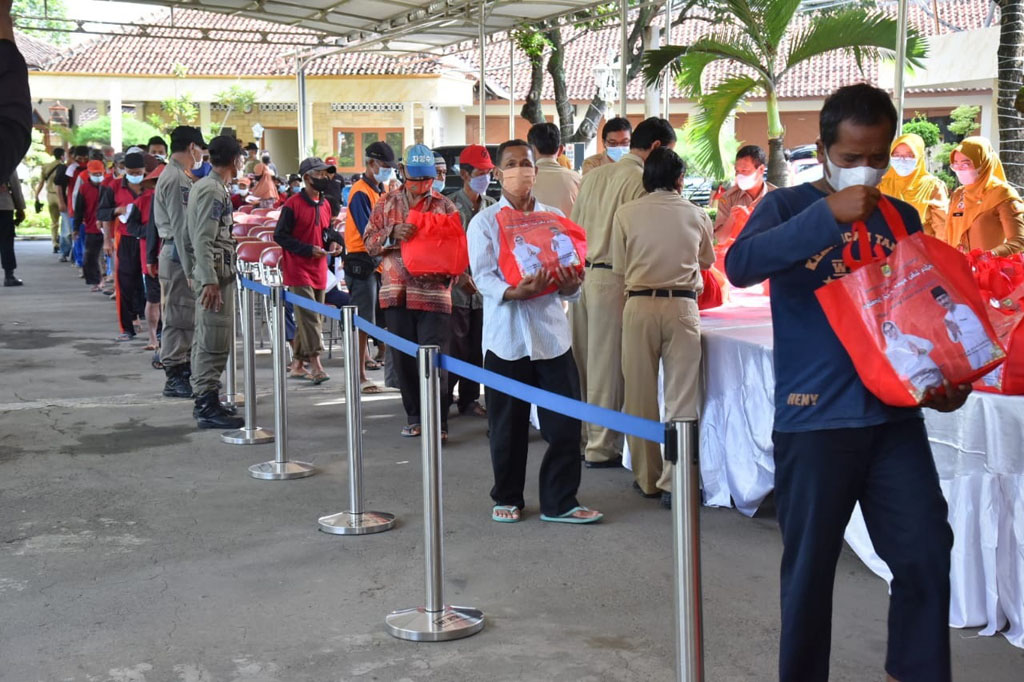 lebih lanjut bupati menyampaikan, pembagian sembako dipusatkan di rumah dinas meski ada juga yang diberikan secara kolektif di masing-masing kecamatan. Warga penerima sendiri sebelumnya sudah diberi kupon untuk mengambil sembako di rumah dinas.
