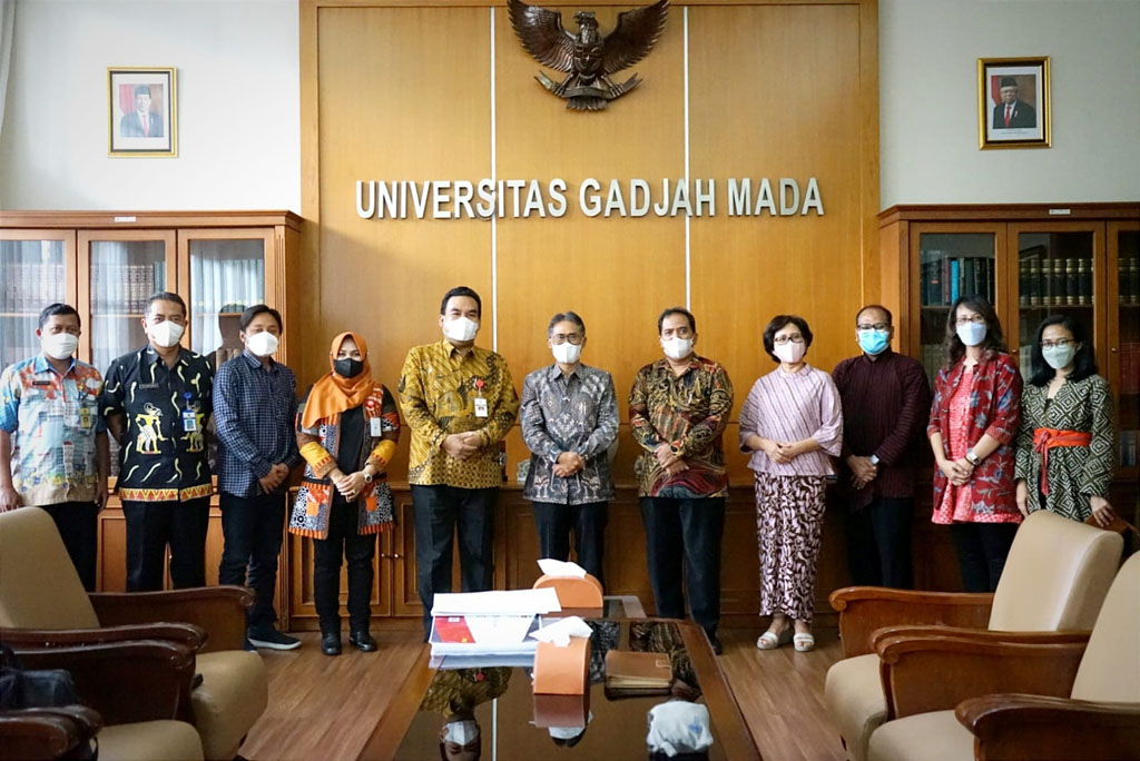 Rombongan diterima langsung oleh Rektor UGM Yogyakarta, Prof. Ir. Panut Mulyono, M.Eng., D.Eng., IPU, ASEAN Eng., yang didampingi Dekan Fakultas Kehutanan (FKt) , Sigit Sunarta, S.Hut., M.P., M.Sc., Ph.D., serta Dekan Fakultas Kedokteran, Kesehatan Masyarakat dan Keperawatan (FKKMK) Prof. dr. Ova Emilia, M.Med.Ed., Sp.OG(K)., PhD., di ruang kerja rektorat, Kamis sore (21/4/2022).