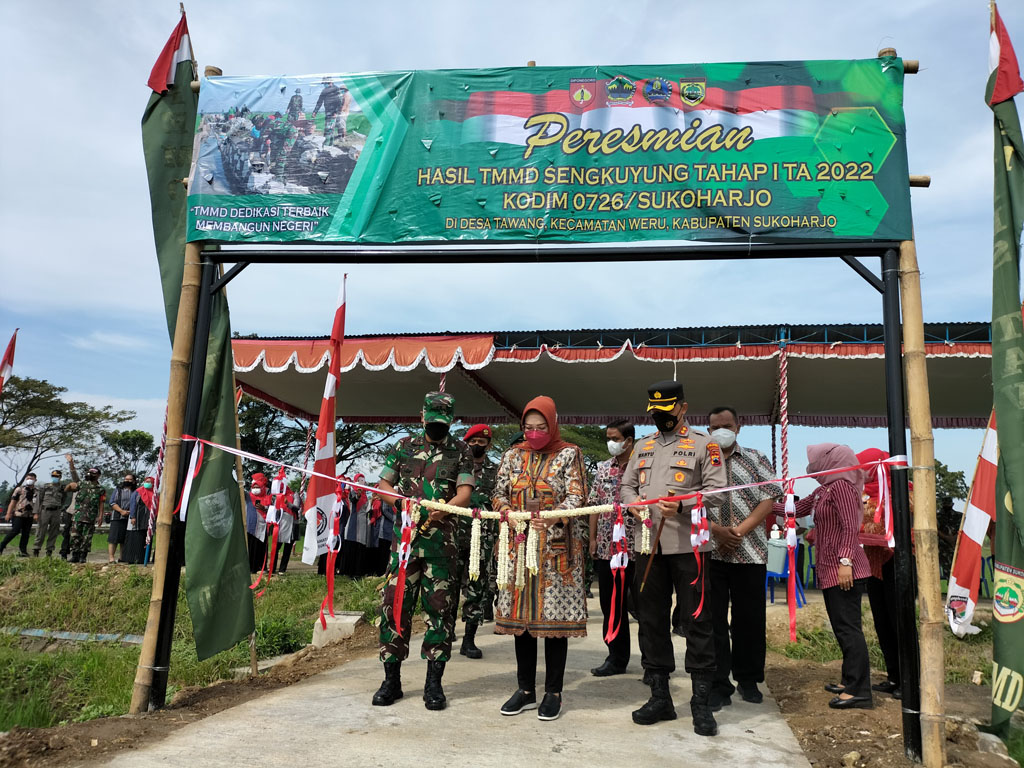 Sukoharjo-Inspirasiline.com. Pembangunan TMMD sengkuyung tahap I yang menyedot anggaran ratusan juta rupiah sudah dinyatakan selesai pengerjaannya hari ini Kamis (9/6/2022) di resmikan oleh bupati Etik Suryani. TMMD di desa Tawang kecamatan Weru itu kedepan akan membawa dampak yang positif untuk masyarakat yaitu akan memperlacar roda perekonomian didaerah tersebut.