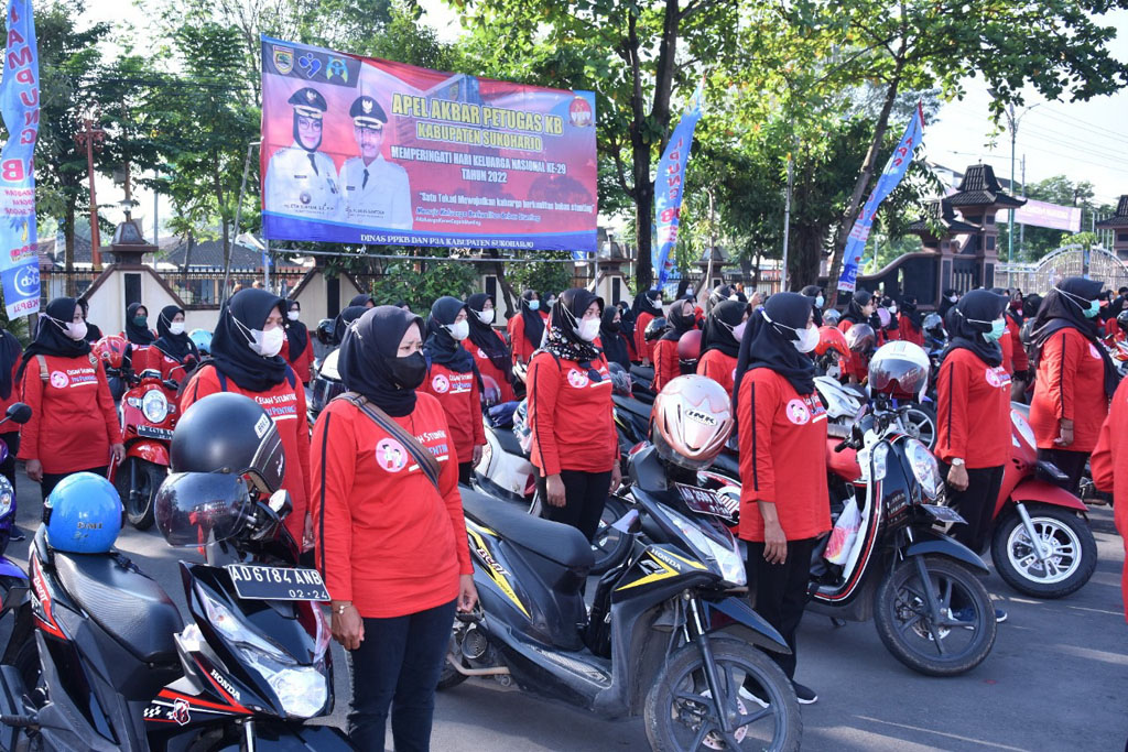 Sukoharjo-Inspirasiline.com. Pemkab Sukoharjo menggelar apel akbar petugas penyuluh Keluarga Berencana (KB) dalam rangka memperingati Hari Keluarga Nasional ke-29, Selasa (21/06/2022).   Apel digelar di halaman setda Sukoharjo dan bertindak sebagai pemimpin apel adalah Bupati, Etik Suryani. Dalam momen Harganas 2022, Pemkab Sukoharjo siap mewujudkan keluarga berkualitas bebas stunting.