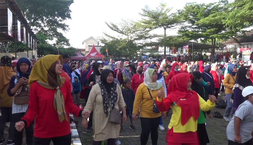 Jalan santai dimulai dari halaman kantor Kecamatan Bulu melintas perkampungan di desa Bulu sejauh tiga kilometer dan kembali ke titik star untuk mengikuti senam aerobik bersama dan pelaksanaan undian berhadiah serta senandung lagu lagu dari vokalis yang sudah siaga di panggung gembira. (Budhy HP)