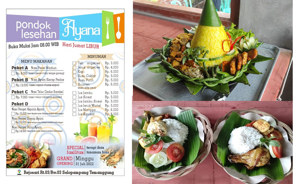 “Meskipun Ayam Goreng sudah menjadi sajian umum yang disukai banyak orang, tetapi ketika dipadukan dengan pecel Madiun, dengan citarasa bumbu empon empon yang khas, maka saya yakin ini menjadi daya tarik tersendiri bagi penikmat kuliner ayam goring”, tutur Mbak Ning Catur sebutan akrab pengelola Ayana.