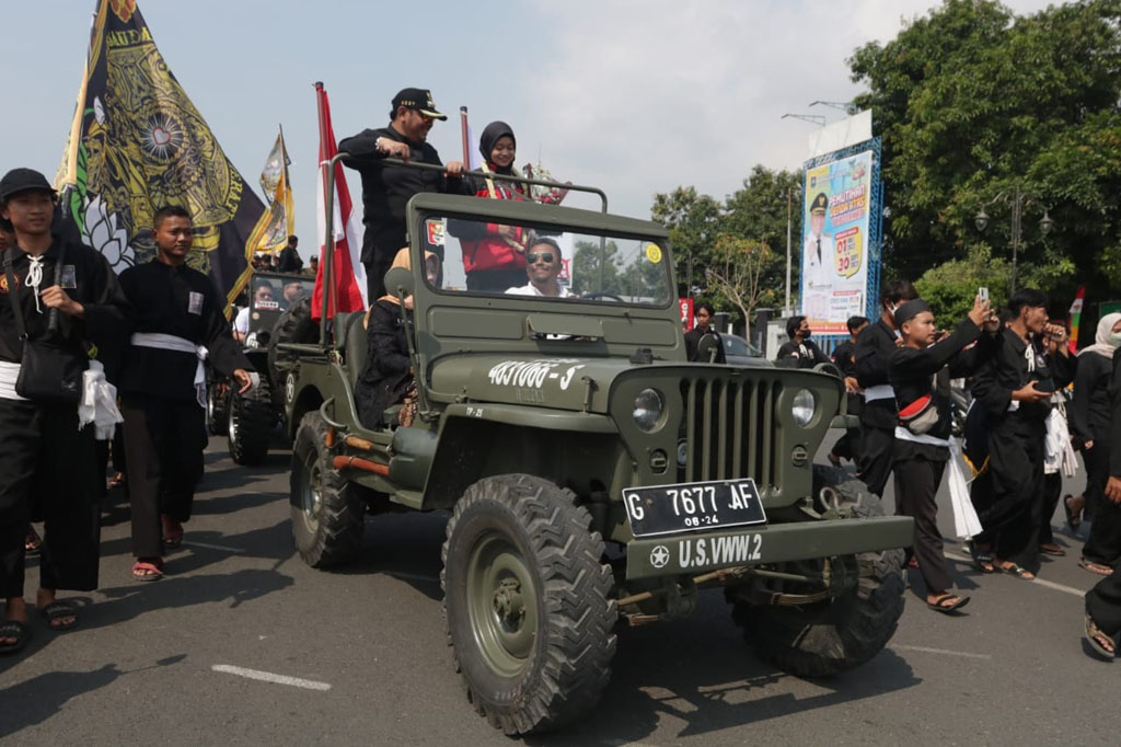 Mahasiswi semester lima ini berdiri diatas jeep didampingi Dedy Yon menuju ke balaikota Tegal untuk beramah tamah sekaligus pemberian penghargaan berupa uang tunai sebesar Rp.100 juta dari APBD dan dari ASN Kota Tegal. Nampak dalam acara penyambutan anggota Forkopinda, para pimpinan OPD Perngurus KONI, rombongan IPSI dan undangan lain.