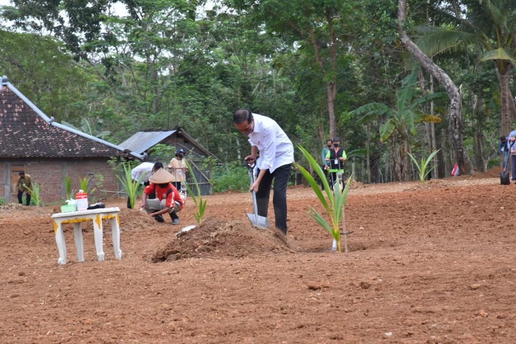 Presiden Joko Wi saat memberikan keterangan persnya mengatakan, penanaman kelapa genjah dilakukan dalam upaya meningkatkan ekonomi di wilayah selatan Kabupaten Sukoharjo dengan memanfaatkan nira kelapa genjah untuk diproduksi menjadi gula semut.