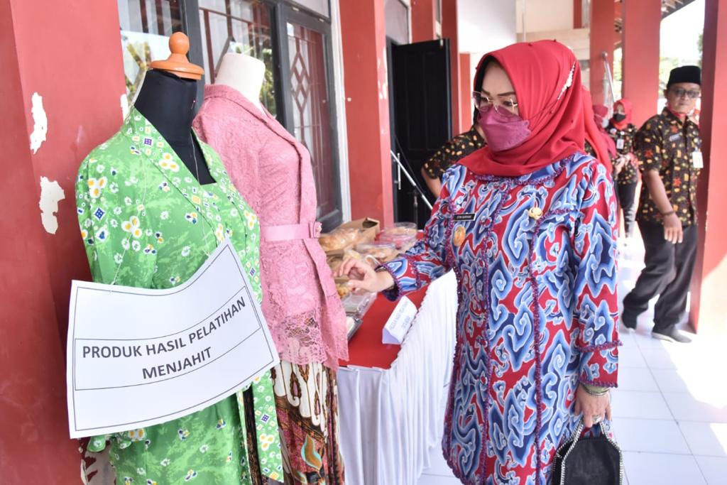 Bupati Etik Suryani meninjau hasil karya pelatihan