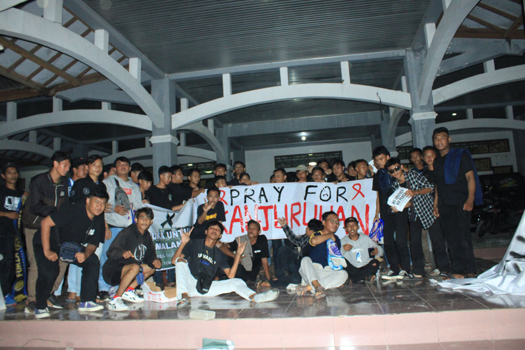 Suporter datang dari berbagai daerah, untuk menggelar doa bersama atas tragedi yang terjadi di Stadion Kanjuruhan Malang, Sabtu (1/10/2022) lalu, yang mengakibatkan ratusan orang meninggal dunia.