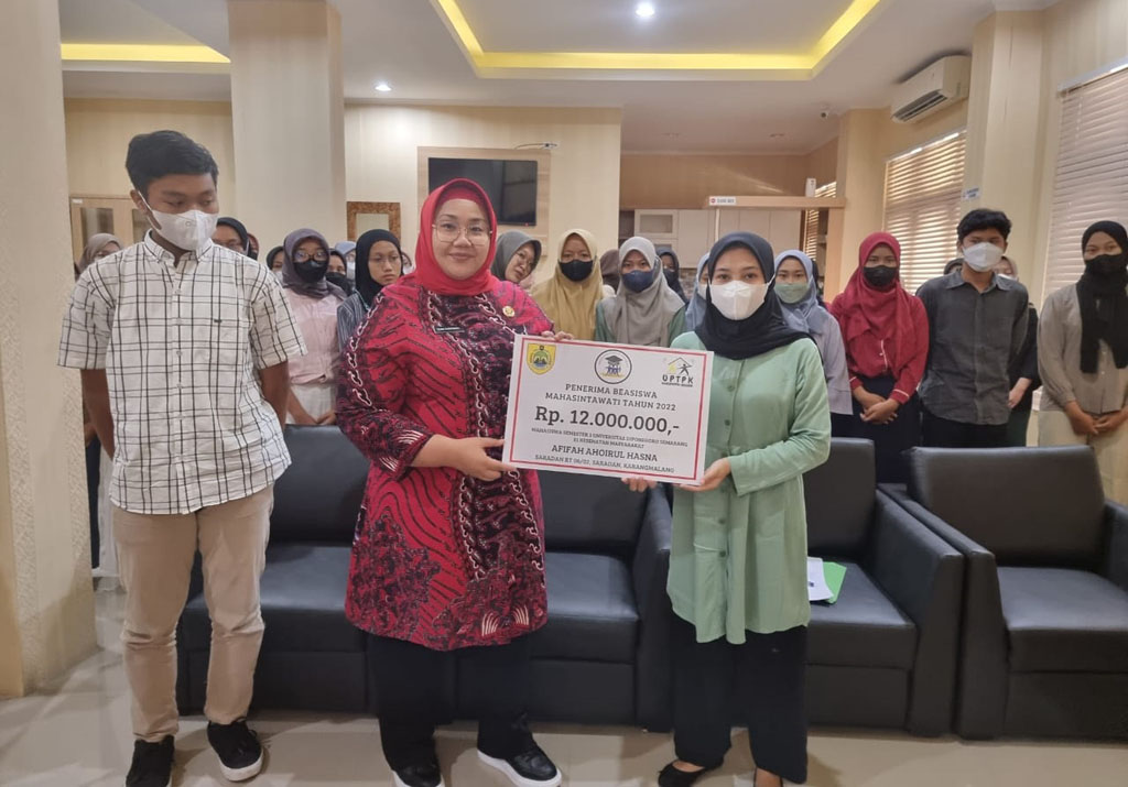 Beasiswa diserahkan Bupati Sragen Kusdinar Untung Yuni Sukowati di Ruang Transit Sekretariat Daerah (Setda) Sragen, Jumat (14/10/2022).