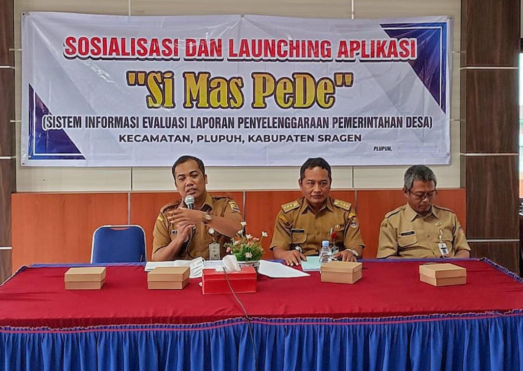Camat Plupuh Edy Purwanto mengatakan, Launching sekaligus Sosialisasi aplikasi “Si Mas PeDe” Sistem Informasi Evaluasi Laporan Penyelenggaraan Pemerintahan Desa (LPPD) untuk Mewujudkan Tertib Administrasi Pemerintahan Desa di Kecamatan Plupuh Kabupaten Sragen.
