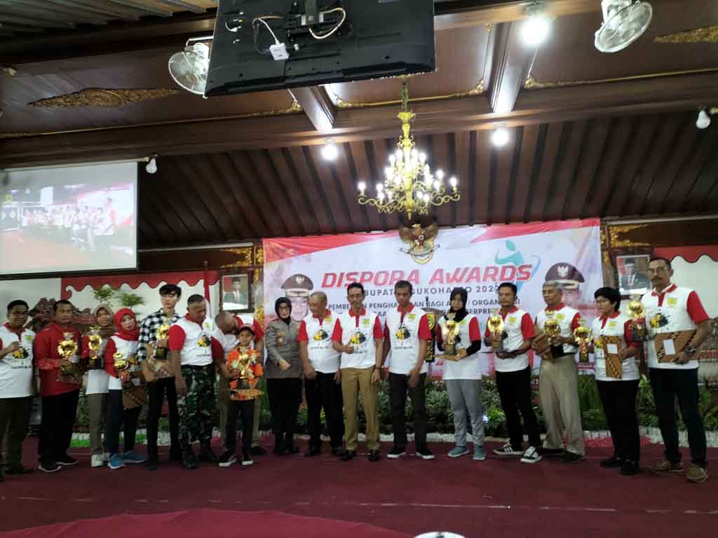 Sukoharjo-Inspirasiline.com. Dinas Pemuda dan Olah Raga (Dispora) Sukoharjo menggelar Dispora Awards yang berlangsung di pendopo Graha Satya Praja (GSP) pada Selasa (6/12/2022) yang dihadiri OPD, atlit berprestasi, pelatih, wasit, tokoh olah raga, dan cabang olah raga yang bisa menharumkan Kota Makmur dikancah nasional maupun Internasional. Mereka patut mendapatkan apresiasi dari Pemkab Sukoharjo yang dikemas dalam Dispora Awards.