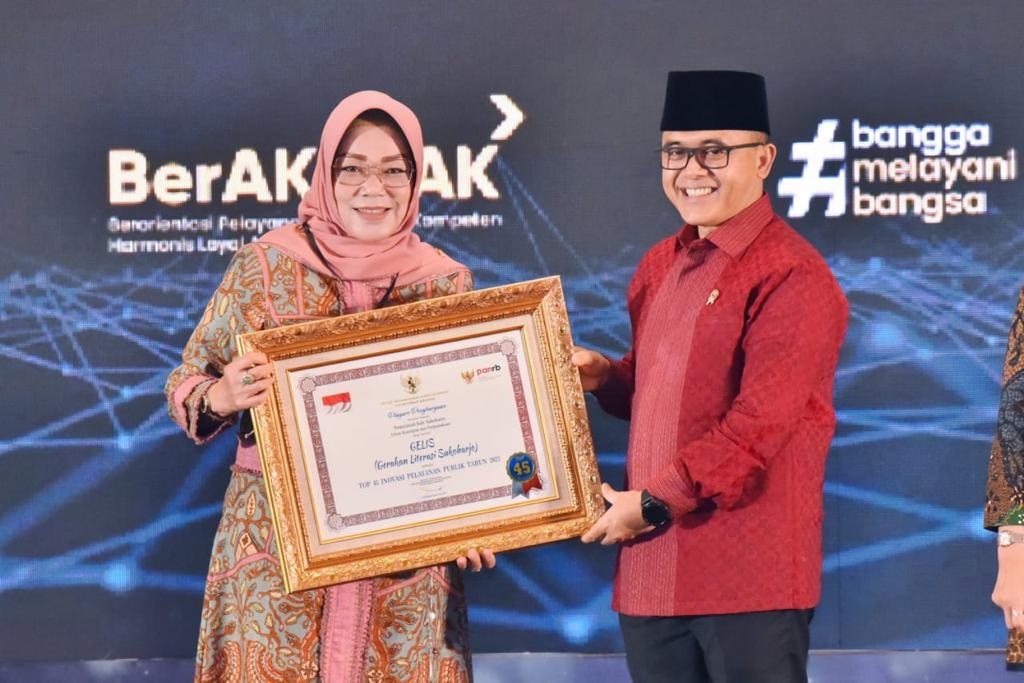 Bupati Sukoharjo Etik Suryani menerima penghargaan Top 45 Kompetisi Inovasi Pelayanan Publik (KIPP) tahun 2022 dari mentri PANRB Abdulah Azwar Anas inovasi GELIS (Gerakan Literasi Sukoharjo) yang diusung oleh Dinas Kearsipan dan Perpustakaan kabupaten, untuk klaster kabupaten setelah lolos seleksi sebanyak 3 378 inovasi yang terdaftar dalam KIPP tahun 2022.