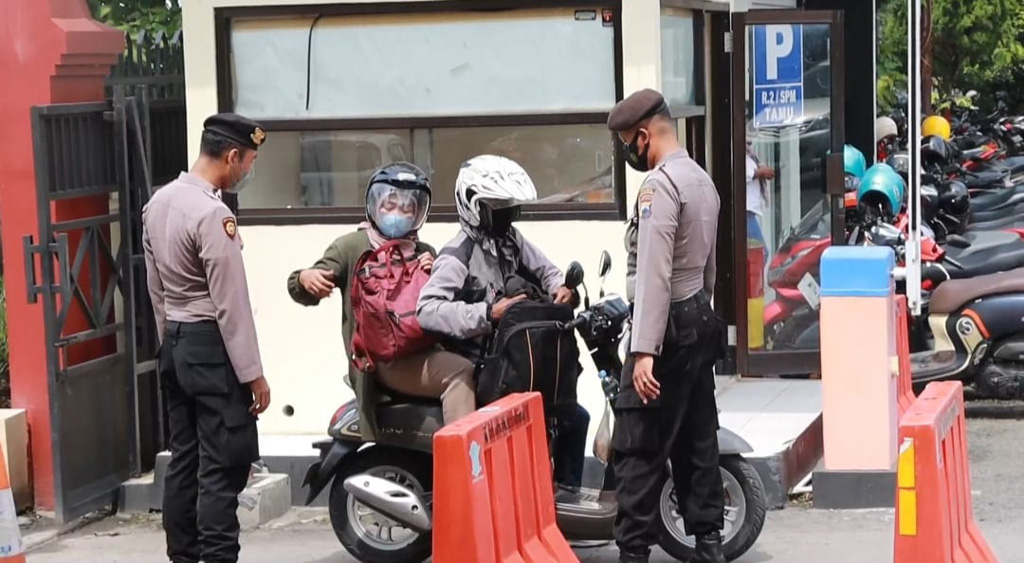 Seperti yang terlihat pada pelaksanaan penjagaan dan pengamanan kepada para pengunjung yang hendak mengurus keperluan di Polres Grobogan.