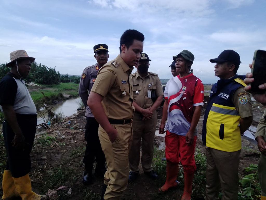 Bupati Dico mengatakan, dirinya meninjau secara langsung kondisi tanggul jebol yang terdampak banjir di wilayah Desa Kebonadem Kecamatan Brangsong.
