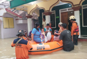 “Akibat tanggul yang jebol mengakibatkan wilayah Kebonadem dan wilayah Kecamatan Brangsong banjir,” kata Bupati Dico usai meninjau lokasi banjir.