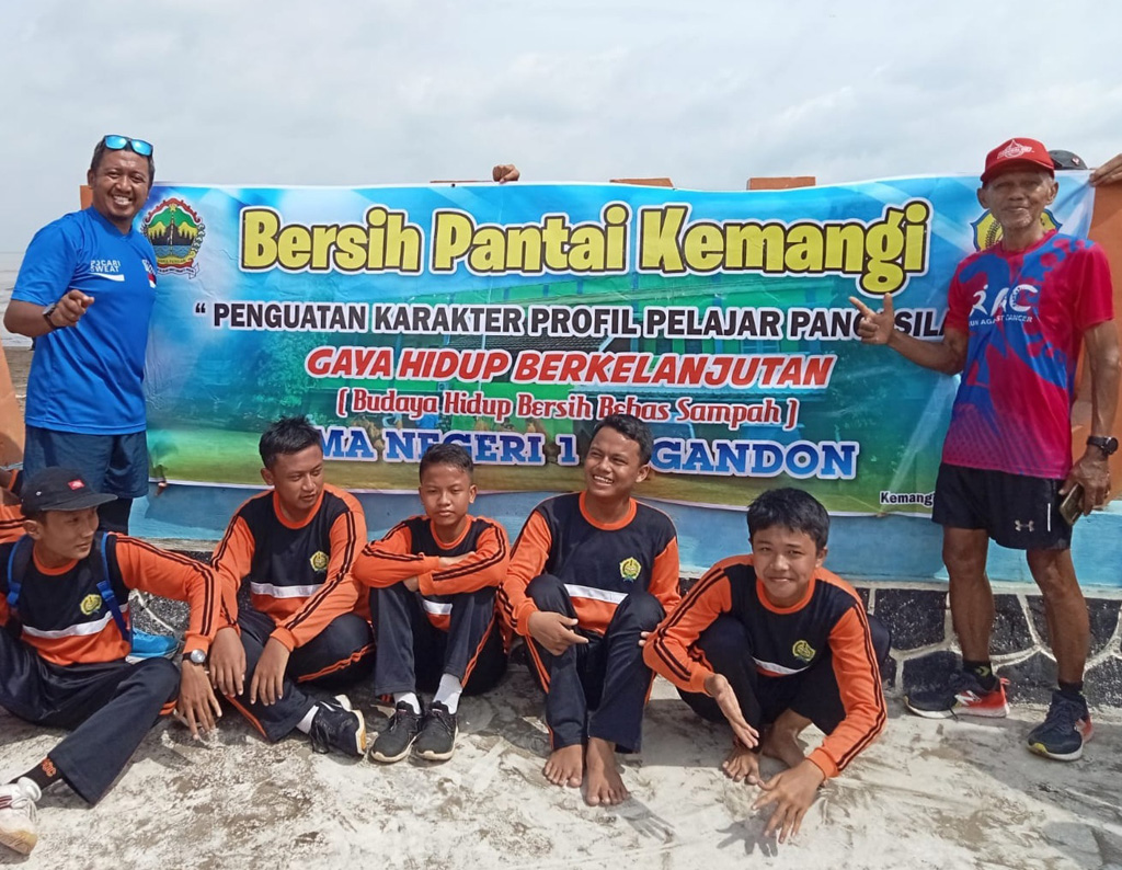 “Alhamdulilah anak bisa kompak melaksanakan aksi kebersihan lingkungan yang dilaksanakan di Pantai Indah Kemangi” kata Nurhadi.