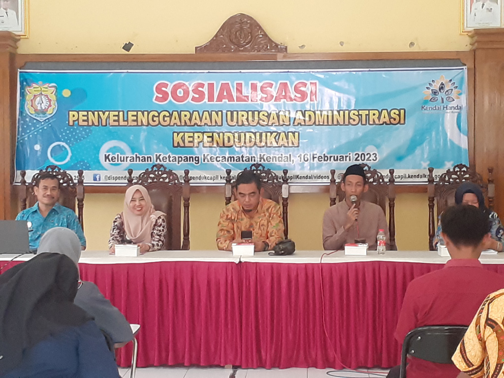 Kendal-Inspirasiline.com. Dinas Kependudukan dan Pencatatan Sipil (Dispendukcapil) Kabupaten Kendal menggelar sosialisasi Penyelenggaraan Urusan Administrasi Kependudukan, Kamis (16/2/2023) di Kelurahan Ketapang Kecamatan Kendal.
