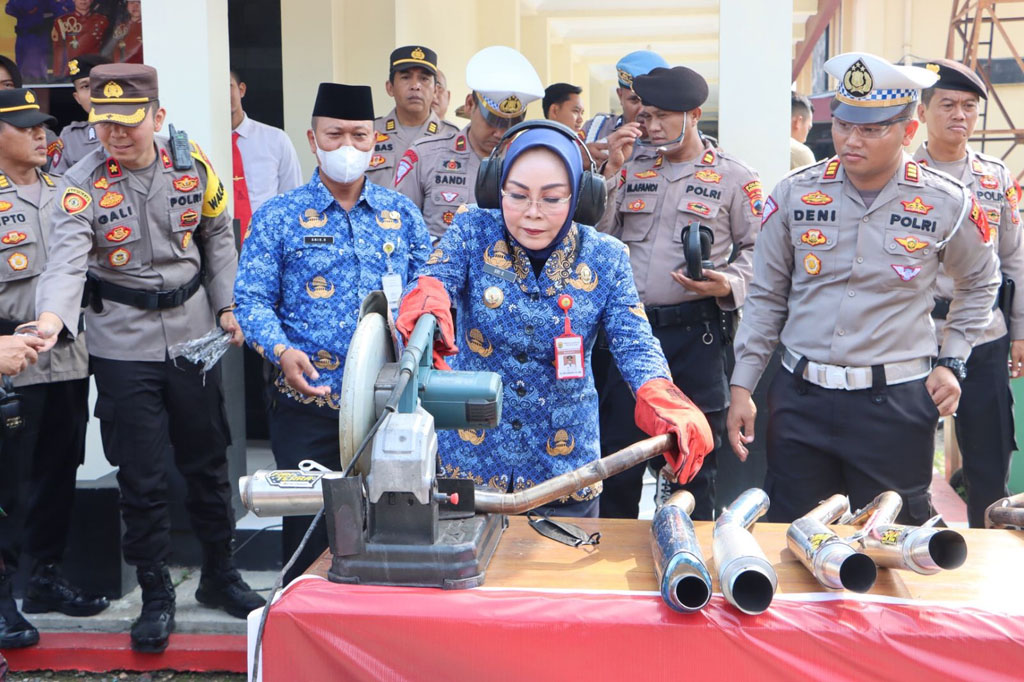 Kegiatan pemusnahan knalpot brong dan miras juga dihadiri oleh Bupati Grobogan Sri Sumarni beserta jajaran Forkopimda Kabupaten Grobogan.
