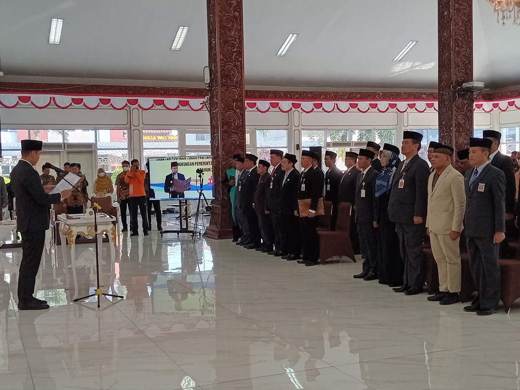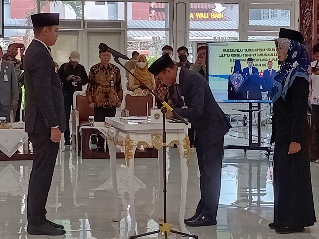Kendal-Inspirasiline.com. Bupati Kendal Dico M Ganinduto melantik Pimpinan Pratama dan Jabatan Administrator di lingkungan Pemkab Kendal, Jumat (5/5/2023) di Pendopo Tumenggung Bahurekso.