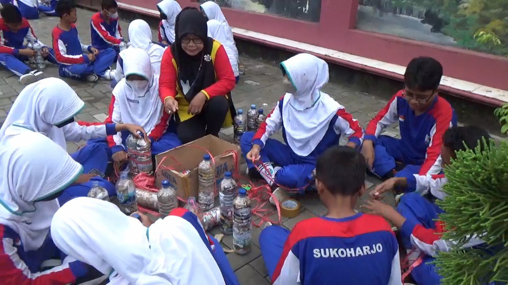 “Siswa klas VII SMPN 2 Sukoharjo budidaya sampah sejak dini, yang mana sampah dipilah-pilah kemudian diolah menjadi kompos dan ecobrick sebagai kegiatan exstra kurikuler siswa, “ ujar Sriyono.
